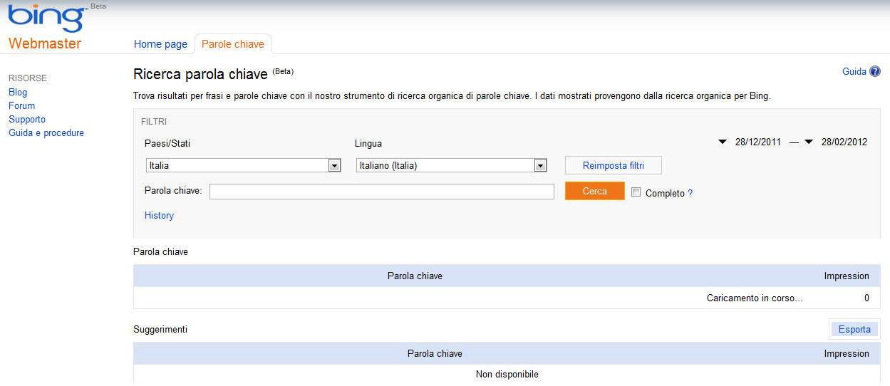 Introdotto e riepilogato le varie novità di Bing andiamo a vedere più da vicino il lo strumento di ricerca keywords.