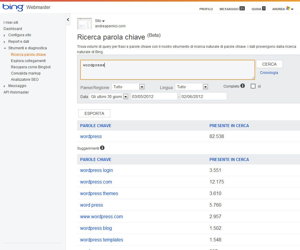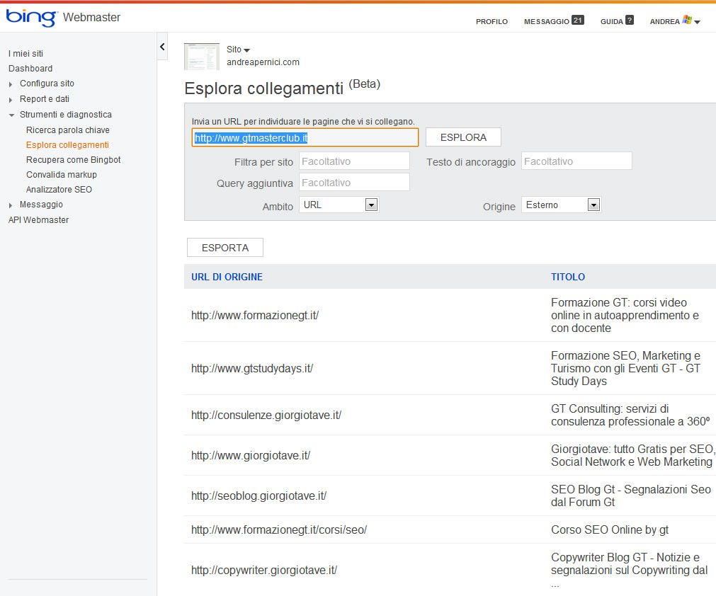 I nuovi strumenti per webmaster (e SEO) di Bing sono davvero una bella sorpresa e tra le funzioni già elencato possiamo trovare: