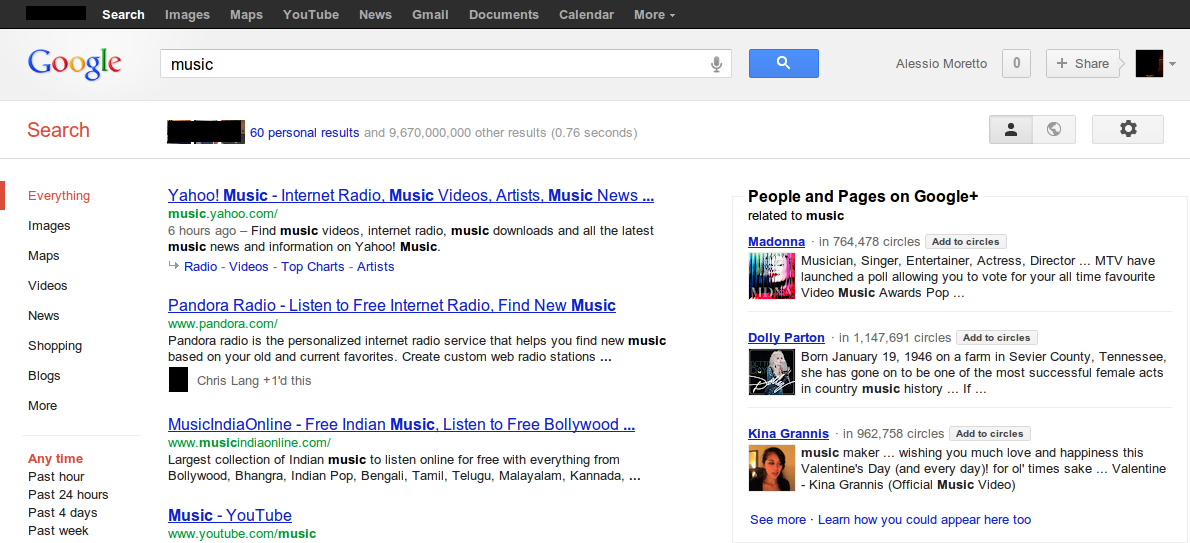 Da conversationmarketing ci arriva un report riguardante il box laterale di Google, quello che, per ora, appare solo nella versione inglese del motore di ricerca e ci mostra le persone o pagine correlate alla ricerca effettuata.