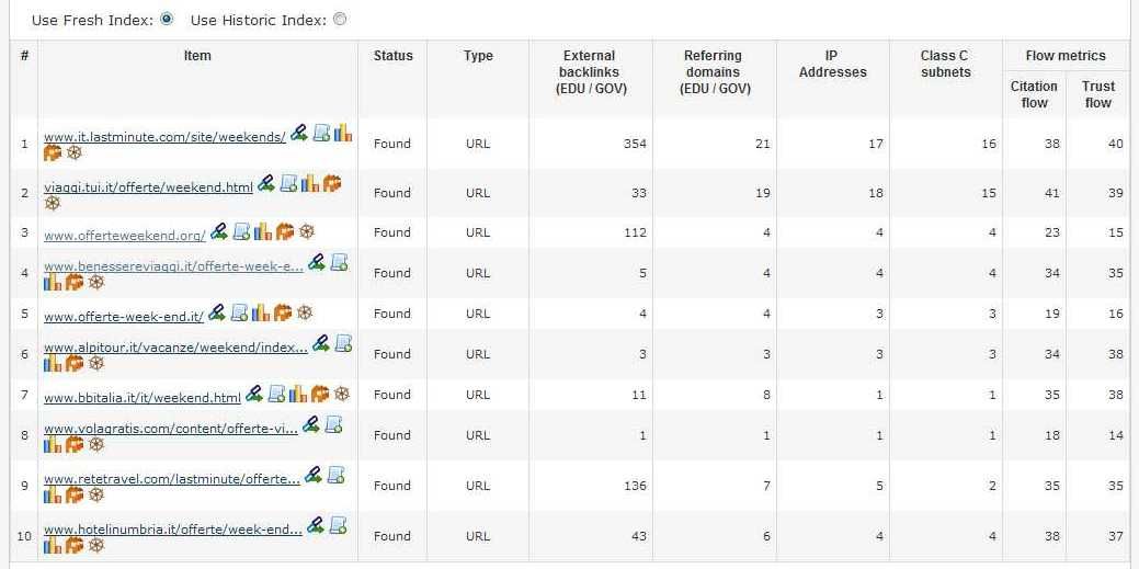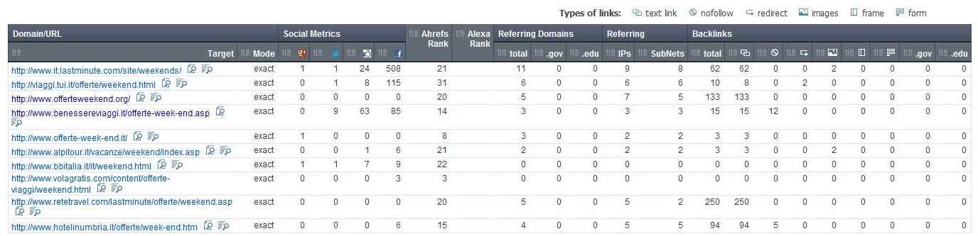 Partiamo da un caso reale dove prenderò una serp mediamente competitiva come “Offerte week end” e analizzerò i primi 10 risultati.