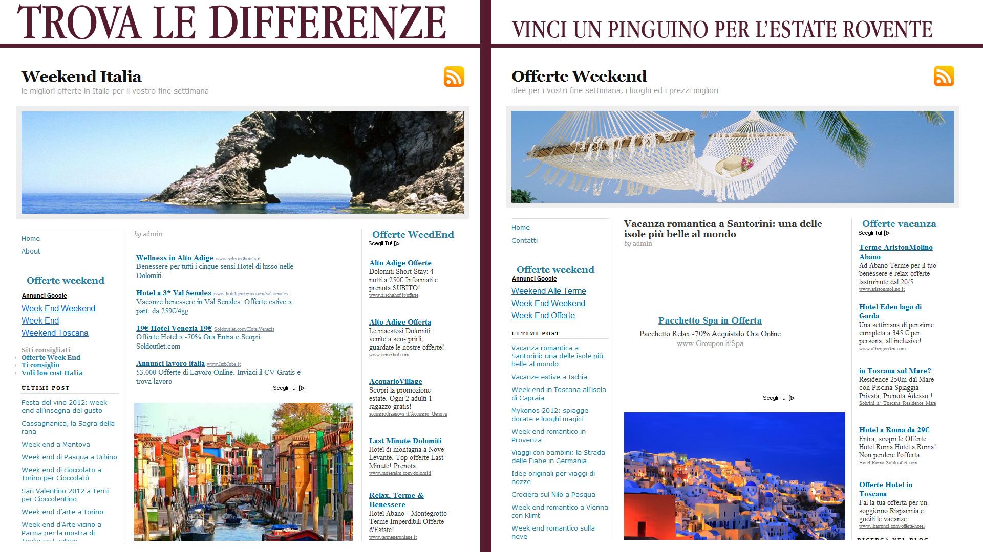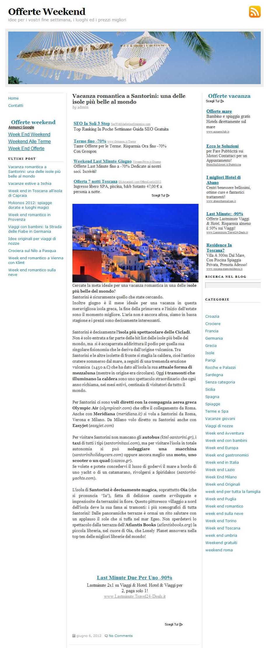 - Il sito non contiene vere e proprie offerte, ma possibili destinazioni di vacanza raccontate come articoletti.