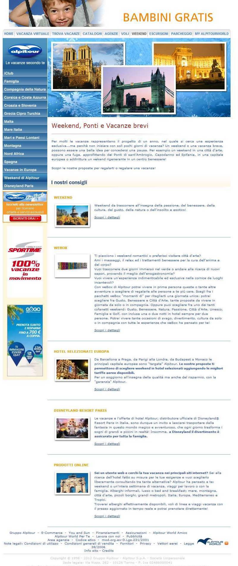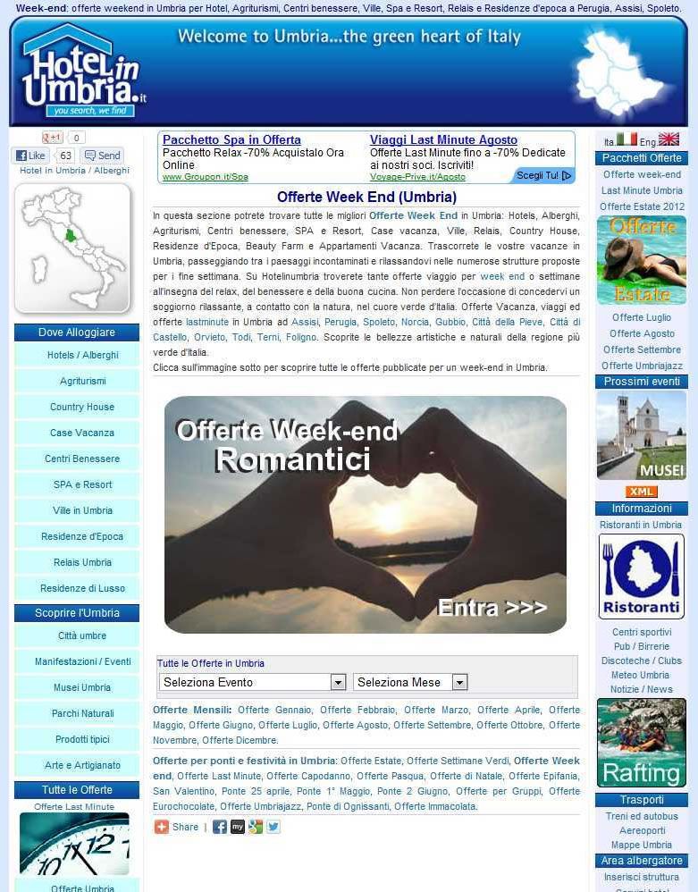 Diverso come tipo di week end rispetto ai primi se pensiamo all’intento di ricerca dell’utente, ma è un’alternativa alle mete lontane con volo+hotel quindi ci può stare. Lista una serie di pacchetti benessere. Forse un po’ eccessiva la ripetizione delle chiavi nel menù regionale.