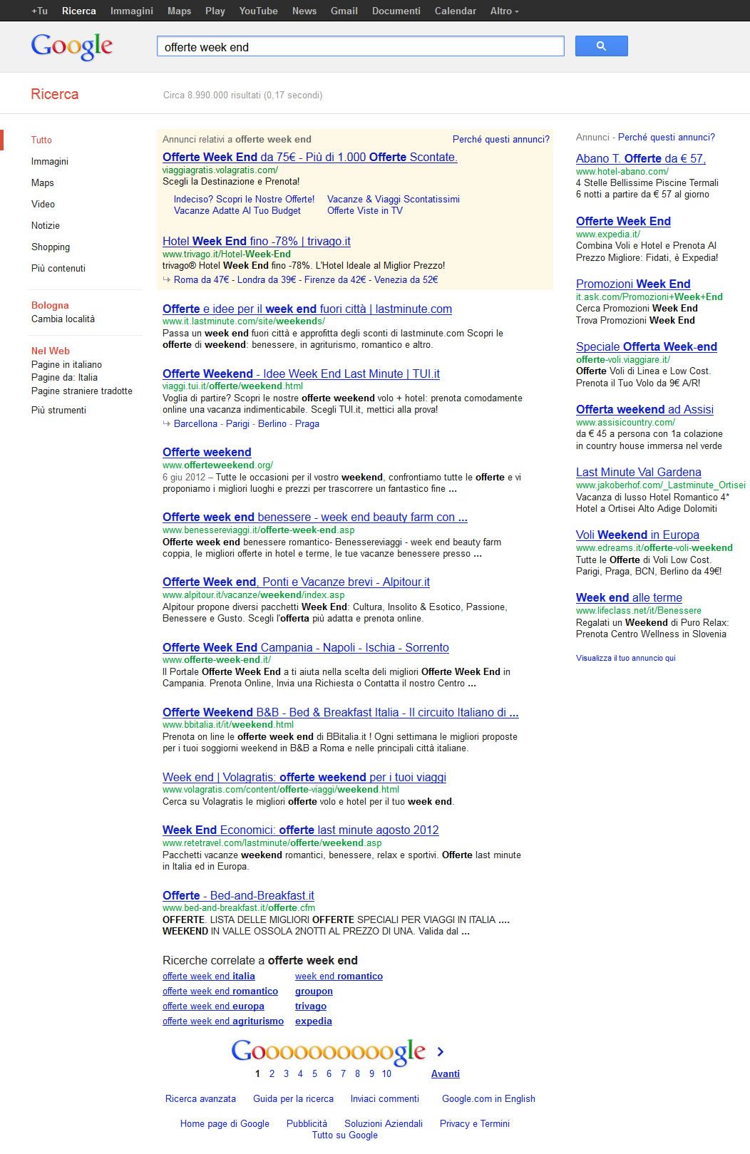 La SERP “Offerte Week End”