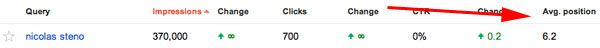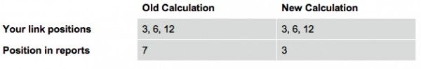 Variano le modalità per definire la posizione media di una query di ricerca, che ora sarà data dalla media dei migliori posizionamenti del sito in tutte le ricerche, al contrario di quanto avveniva in precedenza, quando venivano presi in considerazione tutti gli URL. Solo le posizioni di vertice vengono dunque utilizzate in questo calcolo.