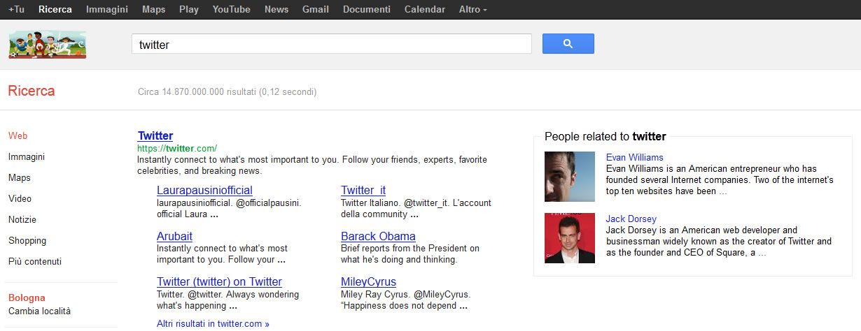 Questa mattina grazie ad un tweet di @LisaGuerrini scopriamo che su Google.it esiste ora per molte ricerche di un termine inglese un box sulla destra relativo alle persone correlate alla ricerca digitata.