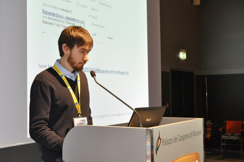 Riccardo parte dal 2008 per spiegare l’importanza delle ricerche locali: oggi il 20% di tutte le ricerche globali su Google contiene una località. In particolare parla del VENICE UPDATE (febbraio 2012), di come oggi Google personalizzi le ricerche anche per chiavi generiche. In ogni aggiornamento c’è qualche riga che riguarda il local.