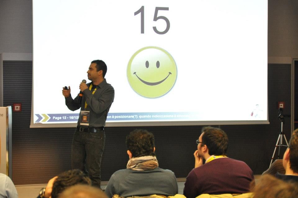 La seconda parte del suo intervento invece è una bella riflessione su come si dovrebbe impostare il lavoro SEO: basta lavoro a cottimo! sarà lo stile rapper del relatore, sarà che finalmente dice le cose che tutti pensiamo, ma alla fine strappa un bell’applauso in platea.