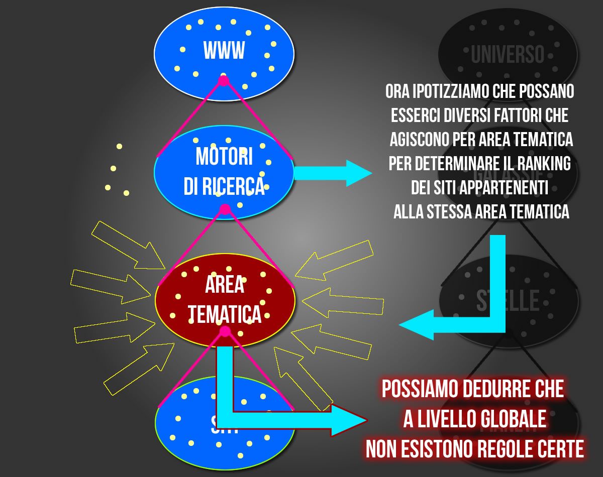 Concentrandoci dunque sugli aspetti di ranking dei risultati nei motori di ricerca possiamo pensare che i fattori SEO possono ipoteticamente variare al variare dell’area tematica.