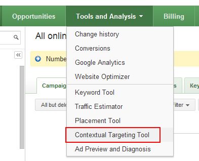 1. Accedendo ad AdWords, selezionate lo strumento Contextual Targeting Tool (CTT).
